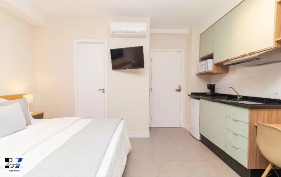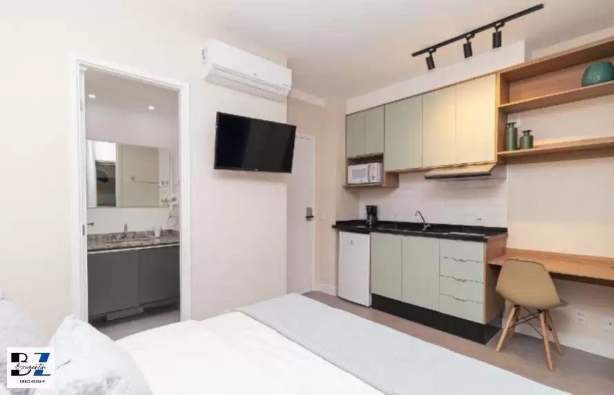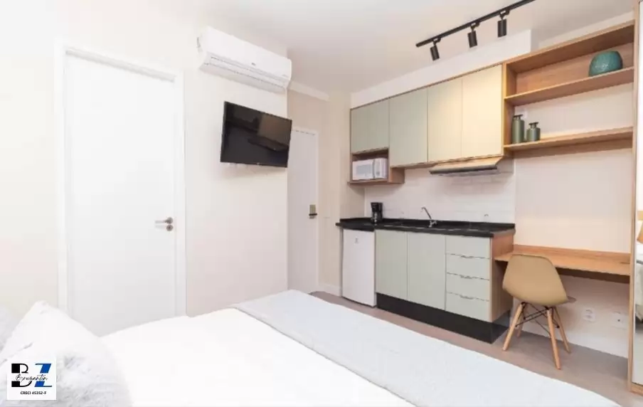 Studio novo mobiliado, prédio com lazer completo com piscina, academia, salão de festas, sauna e lavanderia coletiva. Próximo a Praça da República e todas as comodidades da região central.