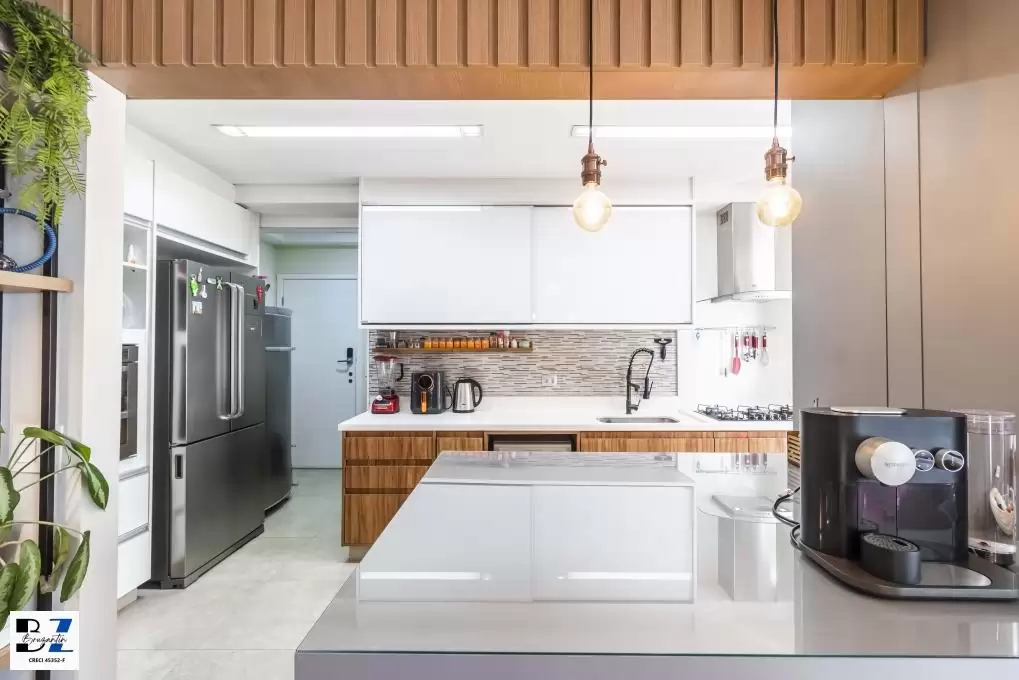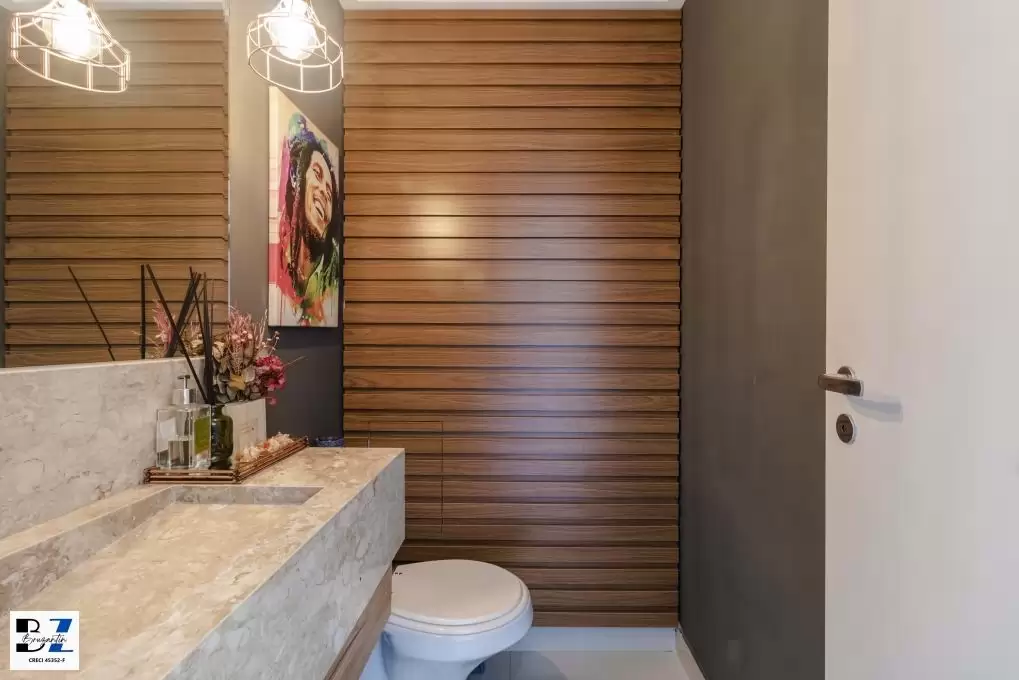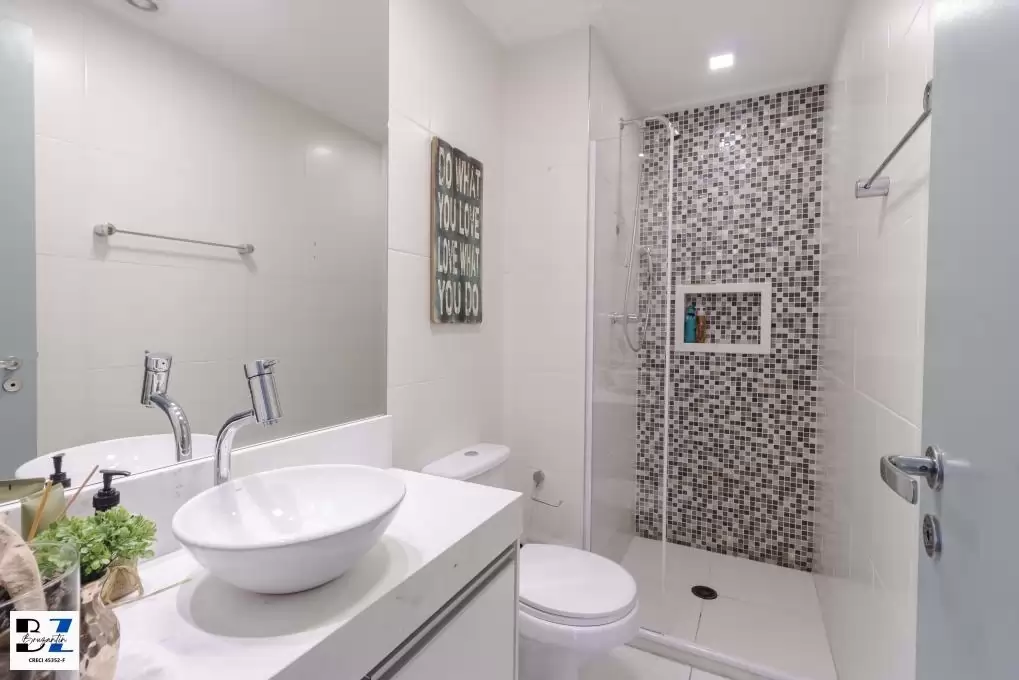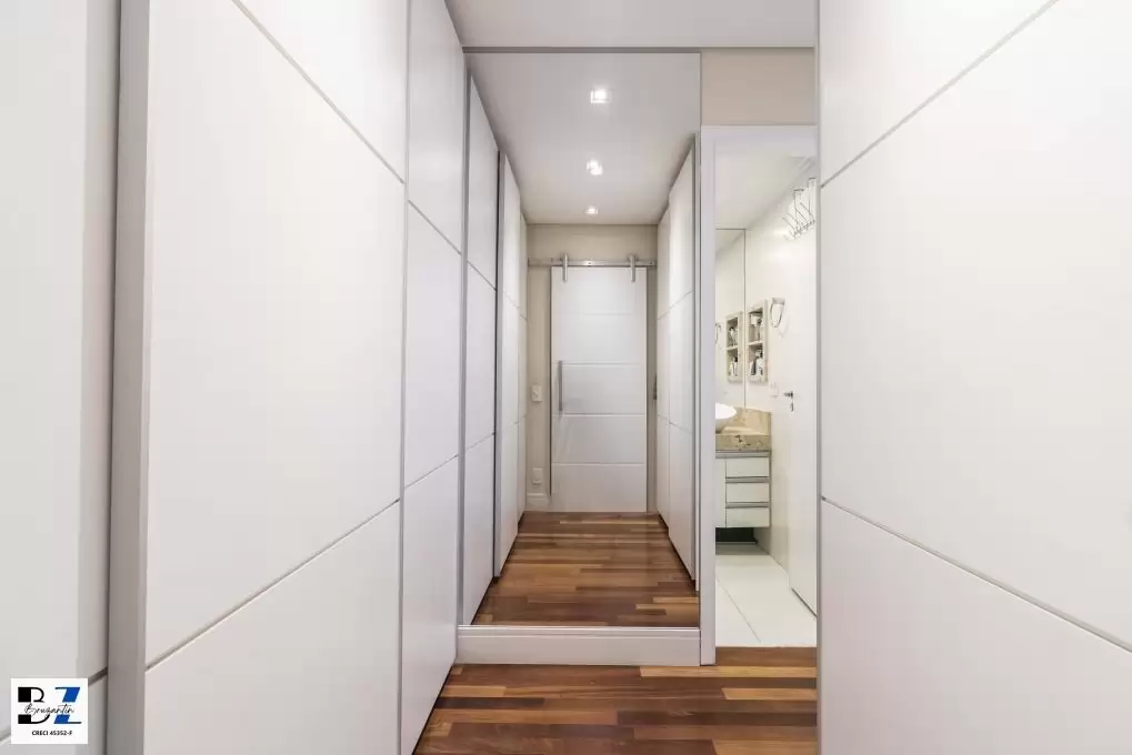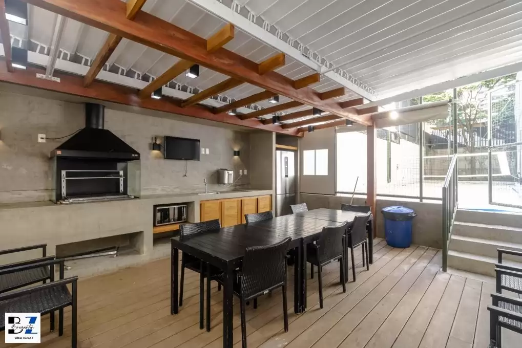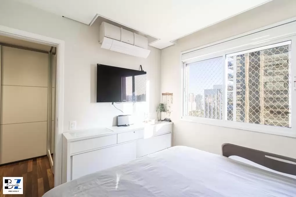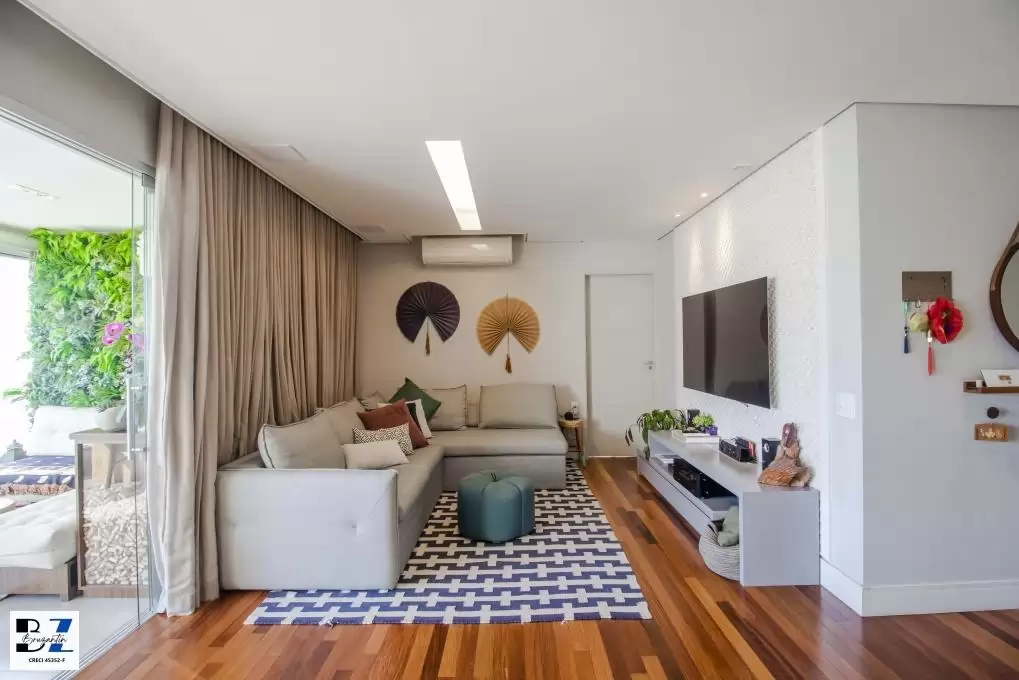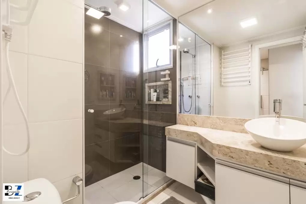 Possui móveis planejados de alta qualidade, ar condicionado em todos os ambientes, sala integrada com varanda gourmet e churrasqueira também integrada a cozinha, lavabo, cozinha repleta de armários, área de serviço completa com despensa, são 2 vagas de garagem + depósito privativo.