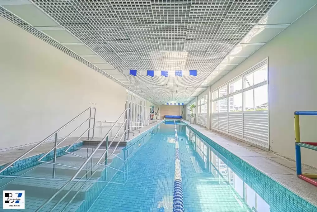 O condomínio conta com 3 piscinas todas aquecidas ( Adulto e Infantil externa + raia semi olímpica aquecida de 25M), espaço gourmet, brinquedoteca, academia completa profissional, sauna, salão de festas, lazer externo com churrasqueira e quadra de areia, portaria 24horas.