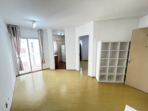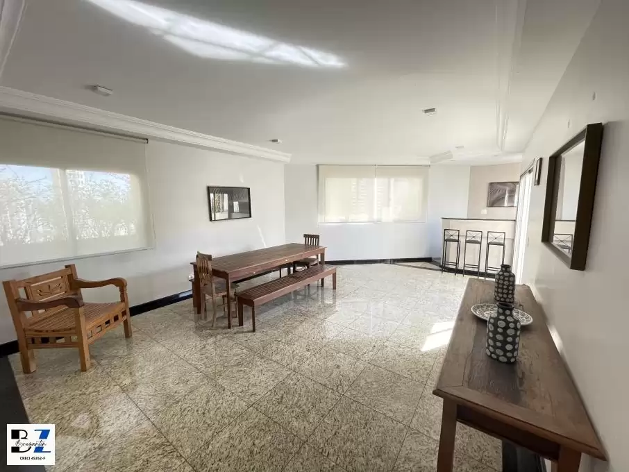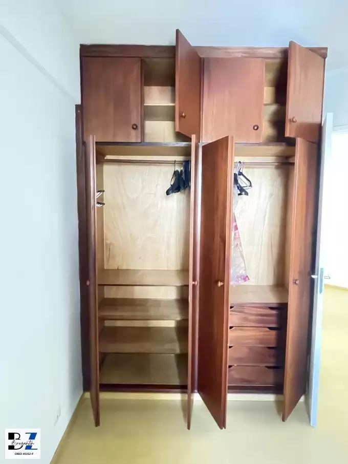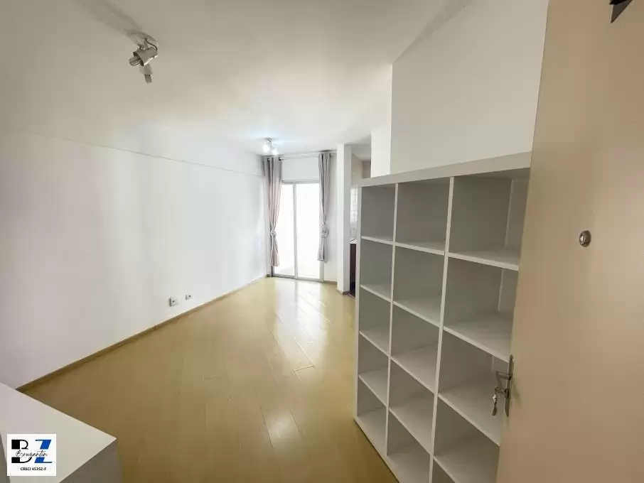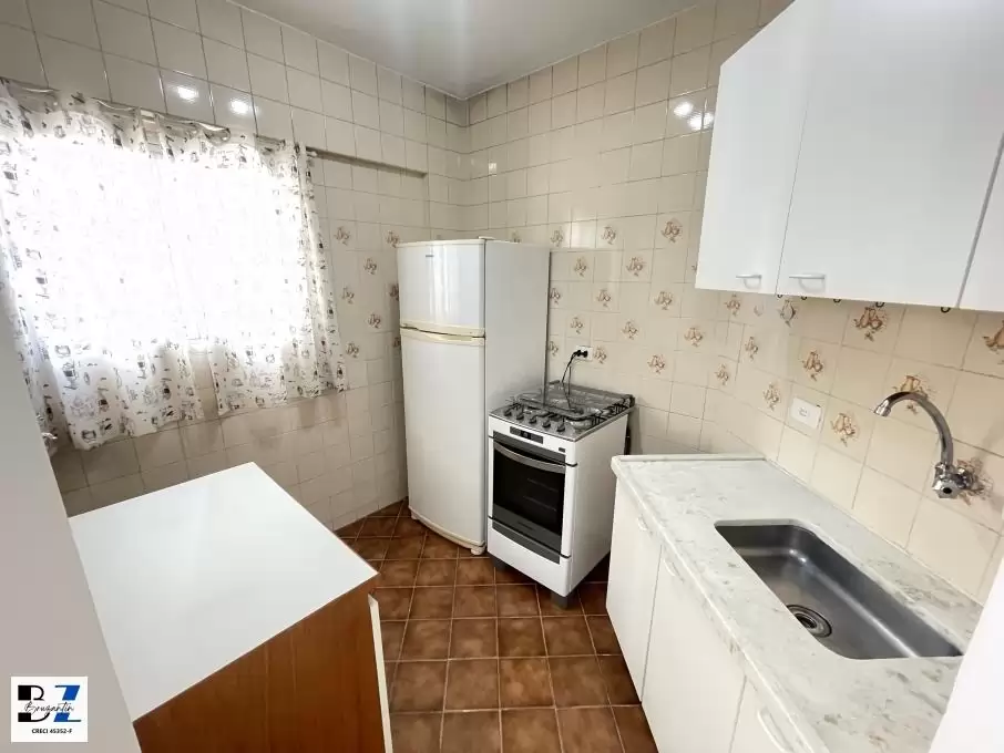 Apartamento com sala com terraço, com 1 suite, e cozinha. O apartamento está semi - mobiliado, com todos armários, geladeira duplex, fogão, TV Led 32 pol.