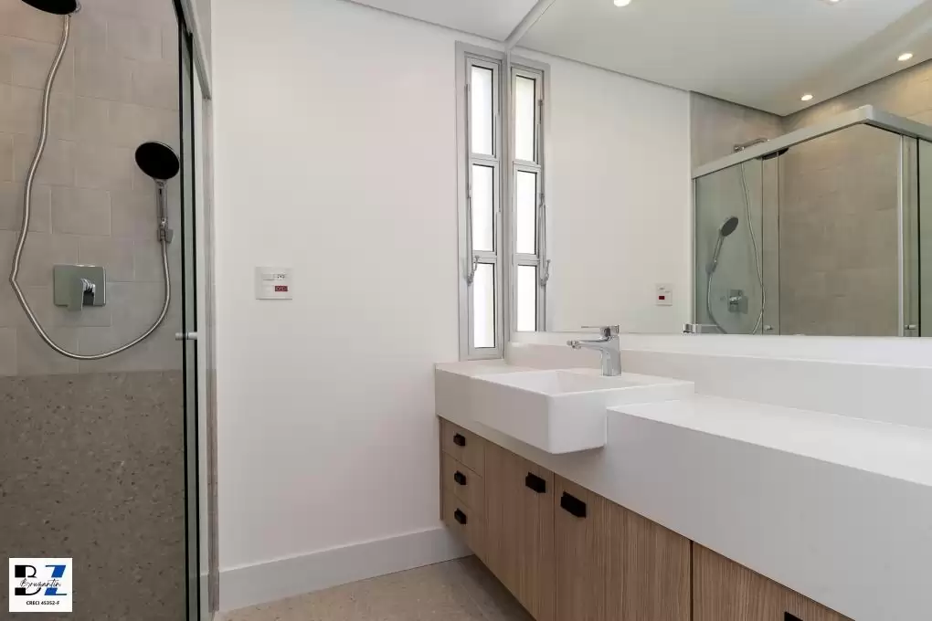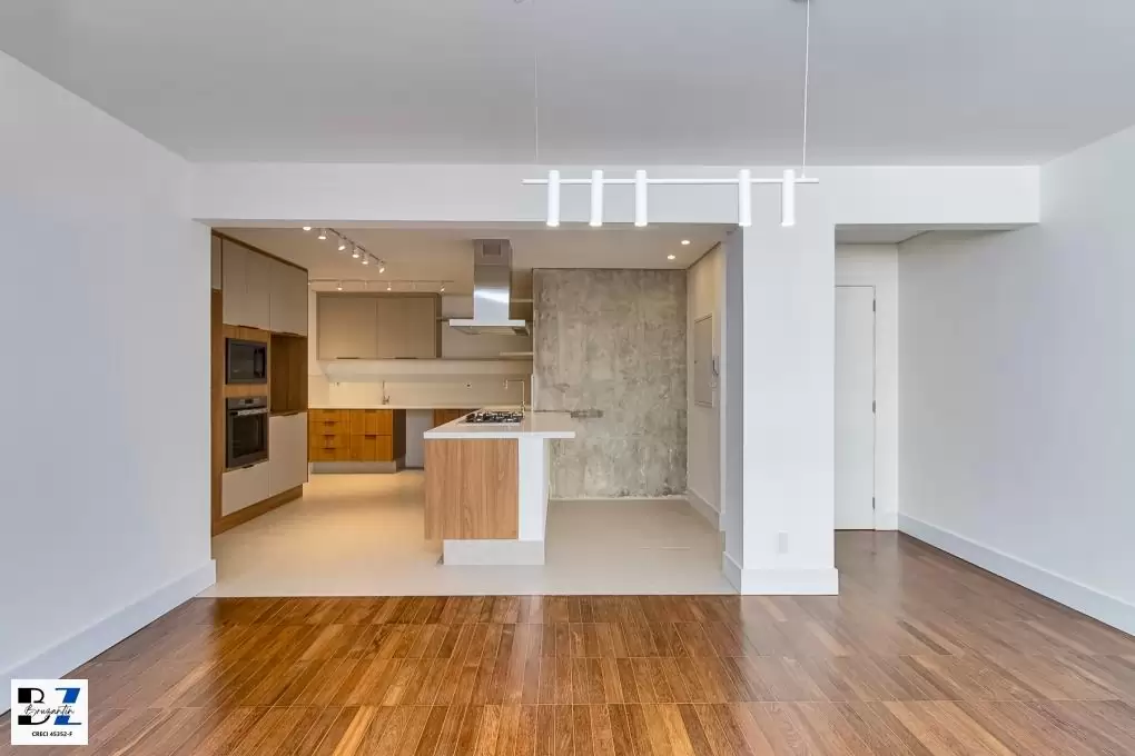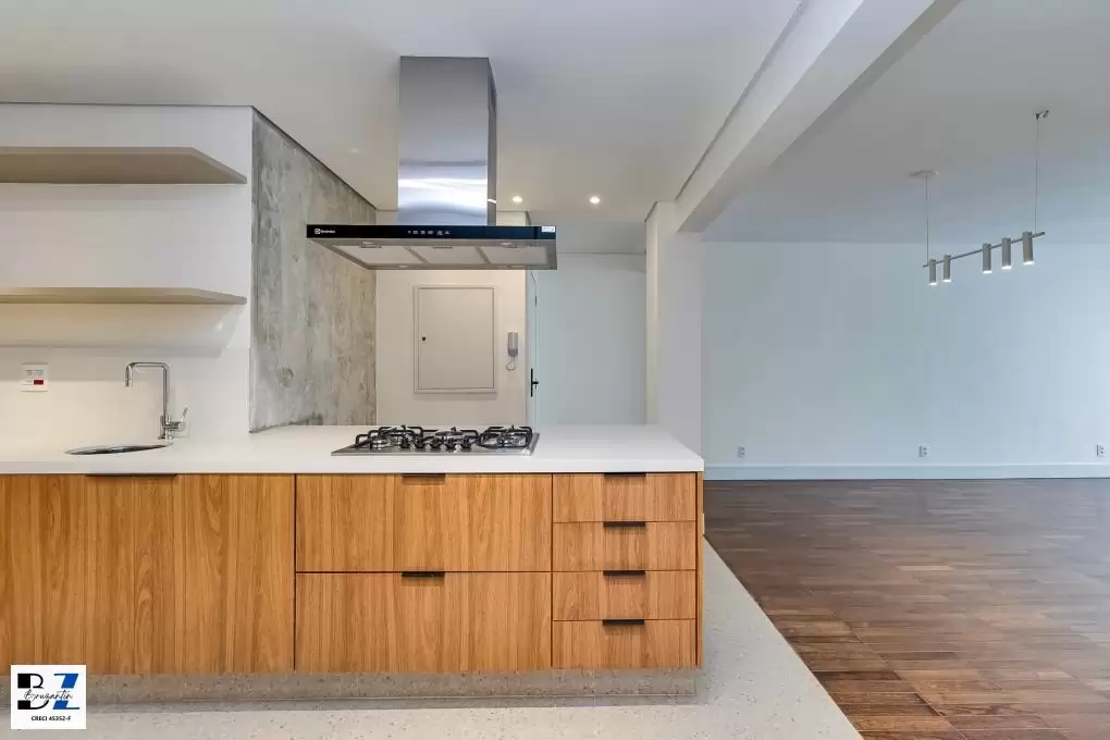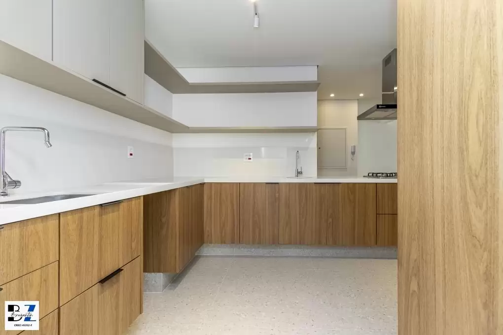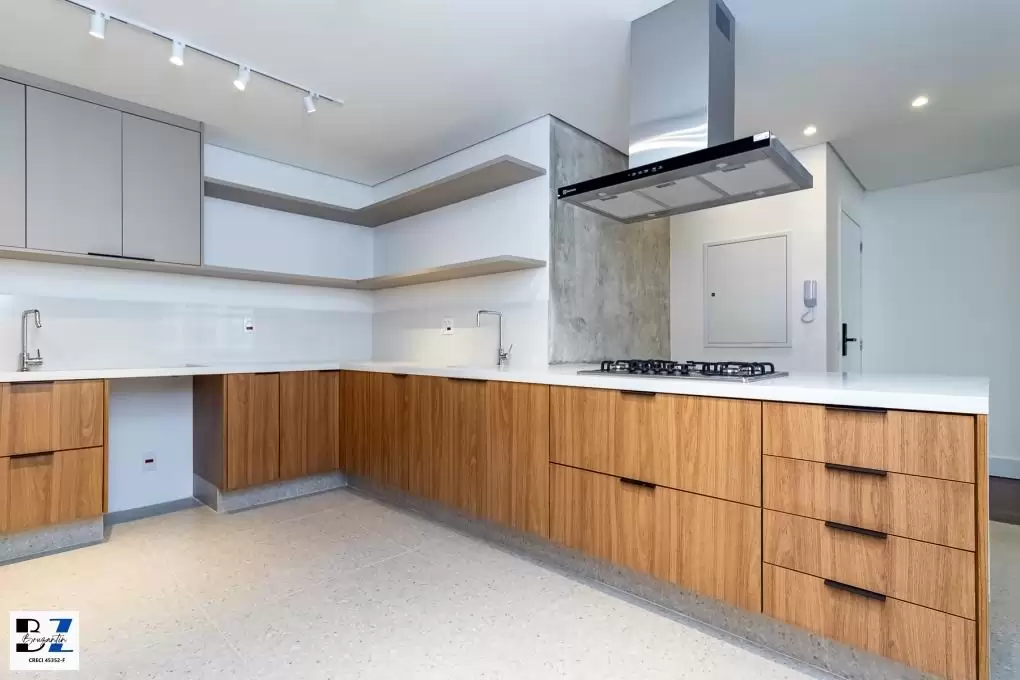 Entregue com marcenaria (cozinha, área de serviço, gabinetes dos banheiros), cooktop, coifa, forno elétrico e aquecedor à gás.